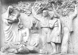 Pojedete-li do Hrotovic, můžete si na budově místního zámku všimnout rozsáhlé plastiky, která připomíná tragédii, která se zde odehrála na samém sklonku války a při