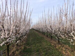 (Foto: Ivo Pokorný) Druhou mrazivou vlnu mají za sebou rozkvetlé stromy raných meruněk v sadech těšetické Pomony, kde teploty dosahovaly až mínus 3,5 stupňů Celsia.