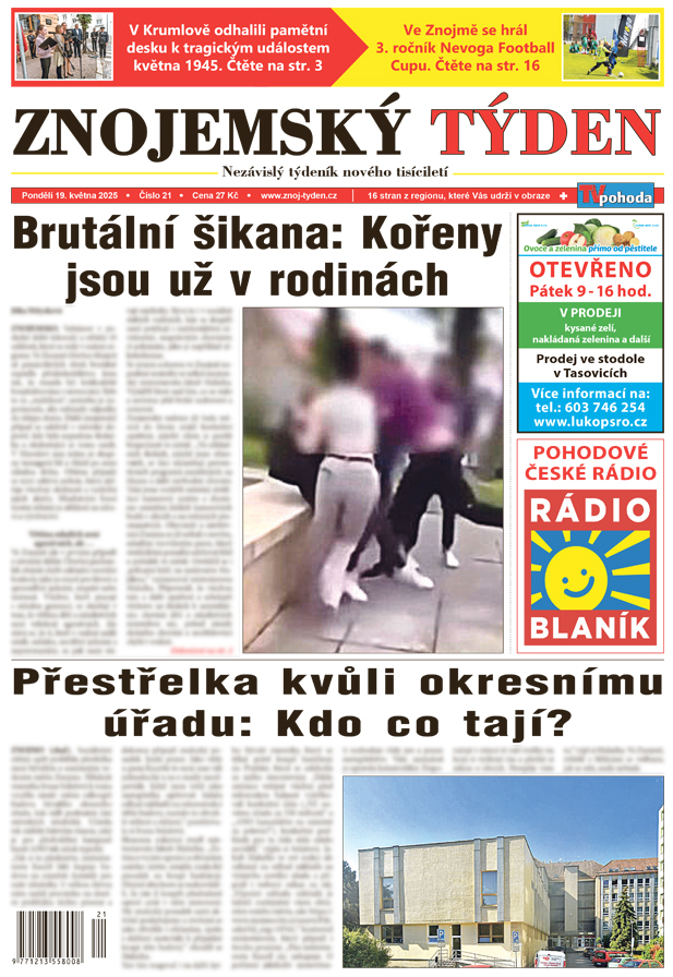 Veřejnost v poslední době šokovaly a otřásly tři události, které se staly v našem regionu. Ve Znojmě čtveřice třinácti až patnáctiletých dívek brutálně napadla pětašedesátiletou ženu tak, že musela být krátkodobě hospitalizována v nemocnici. Bylo to za „maličkost“, seniorka je napomenula, aby neházely odpadky do sklepa domu. Další znojemský případ se odehrál v městské dopravě, kde byla napadena školačka a okolostojící se tomu smáli. V Miroslavi zase jeden ze skupiny teenagerů bil a vláčel po zemi mladou dívku. Oběma případy se nyní zabývá policie, která zjišťuje všechny okolnosti a vyslýchá jejich aktéry. Mladistvým hrozí trestní stíhání za ublížení na zdraví a výtržnictví.
