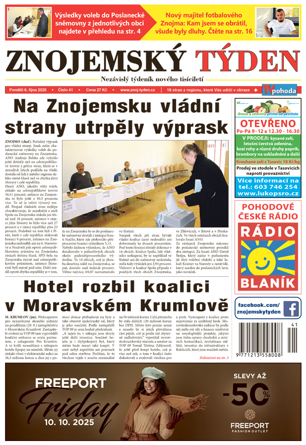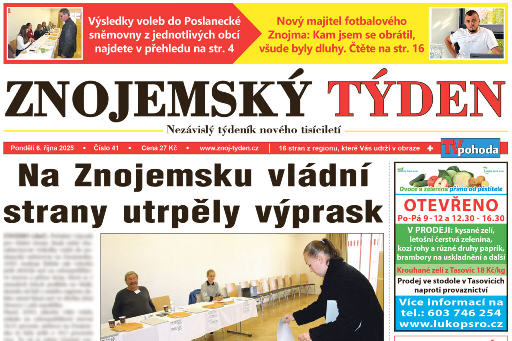 Pořádný výprask pro vládní strany. Jinak nelze charakterizovat výsledky voleb do poslanecké sněmovny na Znojemsku. ANO Andreje Babiše zde vyhrálo ještě drtivěji než na celorepublikové úrovni a pětice stran, která se v minulých letech podílela na vládě, dostala od lidí z našeho regionu daleko méně hlasů než ve zbytku jižní Moravy i celé republiky. V pondělním vydání najdete tradičně i přehledný souhrnu jak volily jednotlivé obce na Znojemsku.