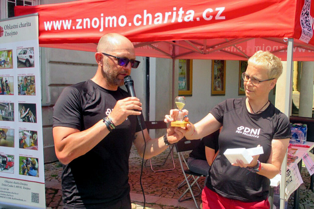 Martin Souček poděkoval Oblastní charitě Znojmo zastřešující Domácí hospic. Obyvatelé Znojemska by si podle něj tuto službu měli hýčkat a vážit si jí, protože v mnoha regionech není. Jak nastínil, o konci života se těžko mluví, protože z něj máme všichni strach. Domestici se snaží toto téma podpořit, protože hospicová péče je jen z 50 procent hrazená z veřejného zdravotního pojištění. Druhou polovinu musí hospice vybrat samy, ať již prostřednictvím sbírek, grantů, darů od firem, obcí či jednotlivců. „Právě my takovou sbírku organizujeme. Část peněz, které v ní vybereme, doputuje do Domácího hospice Znojmo,“ informoval Souček. Zájemci mohou přispět prostřednictvím webu www.8dni.cz, kde je transparentní účet.