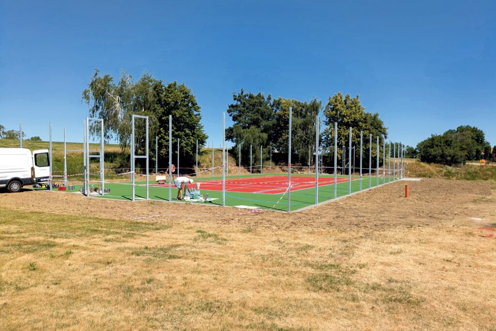 (Foto: Evžen Brtník) Tenis, košíková, volejbal, malá kopaná, nohejbal, to jsou sporty, které brzy nabídne dětem a dospělým v Milíčovicích nové víceúčelové hřiště. Provozovat na něm mohou i další pohybové aktivity, protože má pružný a odolný tartanový povrch. Firma, která je letos v květnu začala budovat, asi o dva měsíce zkrátí výstavbu, takže místo koncem října bude hotové už začátkem září. Obec chystá na jeho otevření turnaj v nohejbalu.