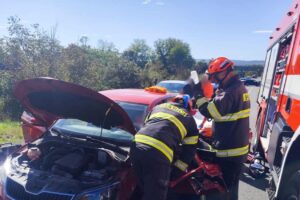 (Foto: Hasiči JHM) S největší pravděpodobností se řízení nevěnovala žena středního věku za volantem Škody Fabia jedoucí ve čtvrtek odpoledne po silnici I/53. Před Znojmem,
