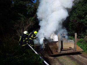 (foto: Hasiči JHM) K hašení požáru bývalé klubovny využívané jako dílna v Mackovicích vyráželi hasiči v pátek krátce po deváté večer. Uvnitř hořela plastová popelnice,