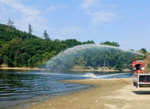 (Foto: Fb MRS Jevišovice) Už od minulého týdne bojují za záchranu ryb na Výrovické přehradě místní rybáři. Rybám se ve vodě nedostává kyslík, a proto
