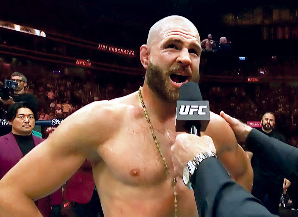 (Foto: Nova Sport) Jiří Procházka má na Instagramu přes milión sledujících a potom, co tento hostěradický rodák předvedl v neděli ráno středoevropského času na galavečeru UFC 320 v Las Vegas, jich bude jistě ještě více. Procházka servíroval v nejprestižnější MMA organizaci světa parádní show. Proti Američanu Khalilu Rountreemu sice tahal dvě kola za kratší konec, v tom třetím ale rozehrál „Mistr chaosu“, jak byl i po duelu titulován, opravdové peklo a připsal si drtivé K.O.